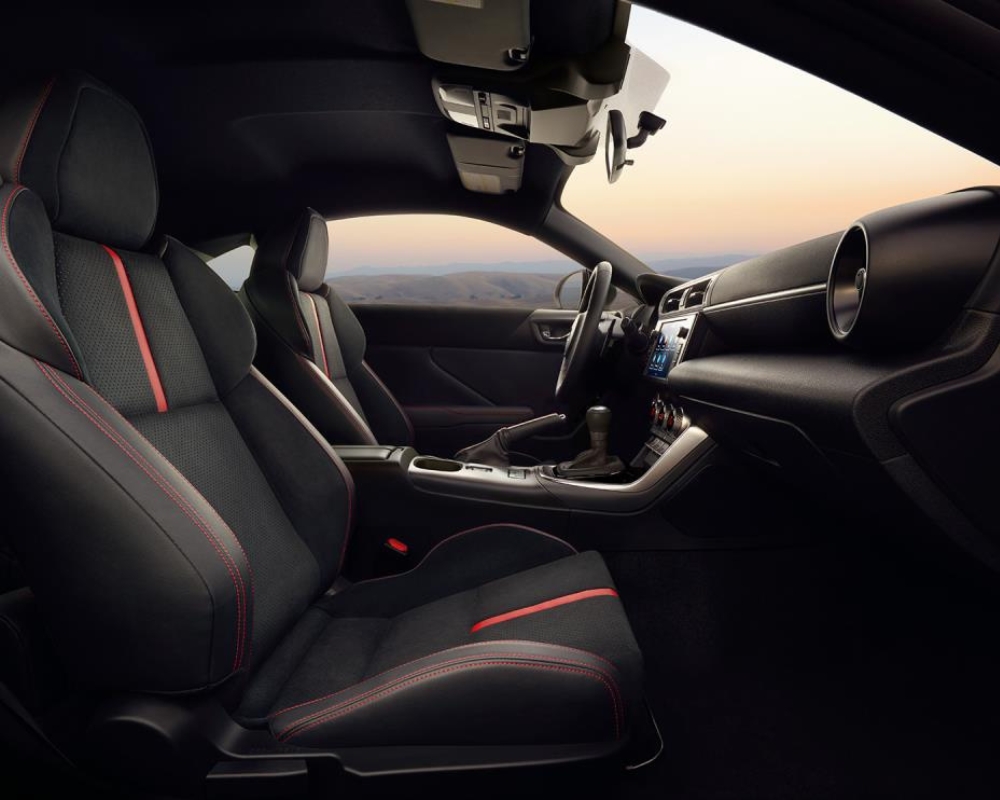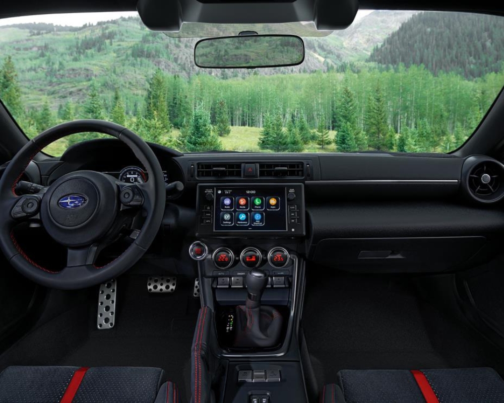 Inside, the BRZ is designed with the driver in mind. Deeply bolstered sports seats provide support during dynamic driving, and the leather-wrapped steering wheel offers a premium touch. The customizable 7-inch digital instrument cluster displays vital information, including a digital G-force meter, ensuring drivers stay informed and engaged. Automatic climate control and keyless entry with push-button start are standard, enhancing everyday usability.
